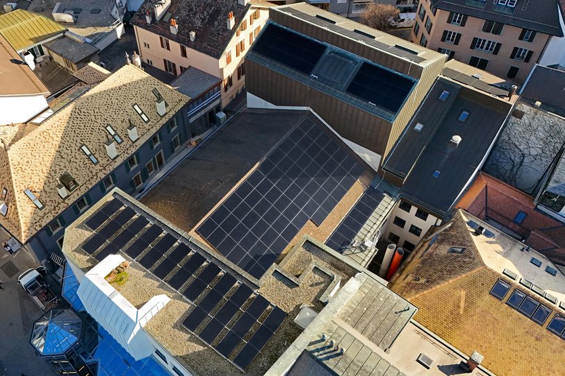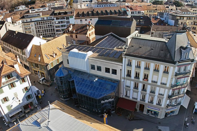 Réalisation d'une toiture solaire sur le bâtiment du Théâtre Le Reflet à Vevey.